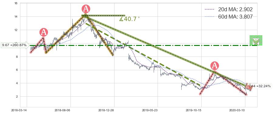♘ 阻力价格位9.67,可信任强度59.76%,距离最后交易2020-03-13形成的收盘价格2.680相差 +260.87%