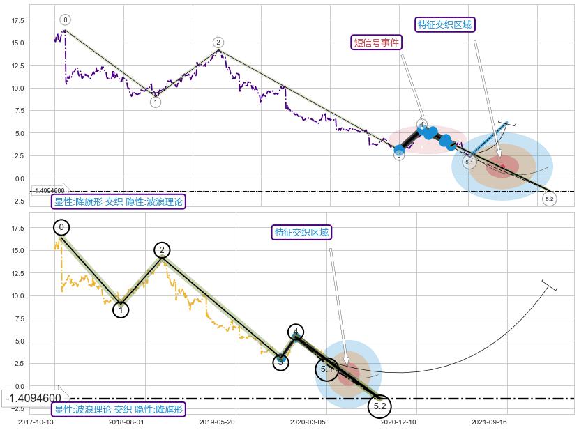 | 6 🅚:徐缓下降 ➕ 🎢:【死亡谷】卖出点均线组合卖出点信号形成后,猜想后续破位下跌,沿着向下的尖头三角下跌 ☞ 看空信号 ⇥ 【均线】交织【🅚线】⇥ 综合量化分数: 47 | > |