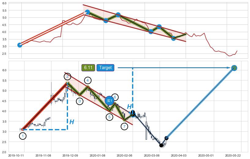 ➣ 最小中继整理涨幅→𝐇: 2.285 (𝐇旗杆的长度:旗杆起点→顶点)