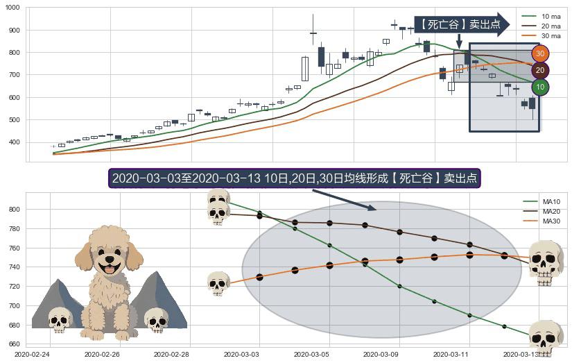 ⚀ 2020-03-04-日至2020-03-13-日显现 10日-20日-30日均线 【死亡谷】卖出点 看空信号,后市看跌,卖出