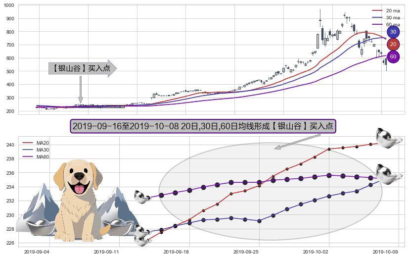 ⚀ 2019-09-17-日至2019-10-08-日显现 20日-30日-60日均线 【银山谷】买入点 看多信号,后市看涨,买入