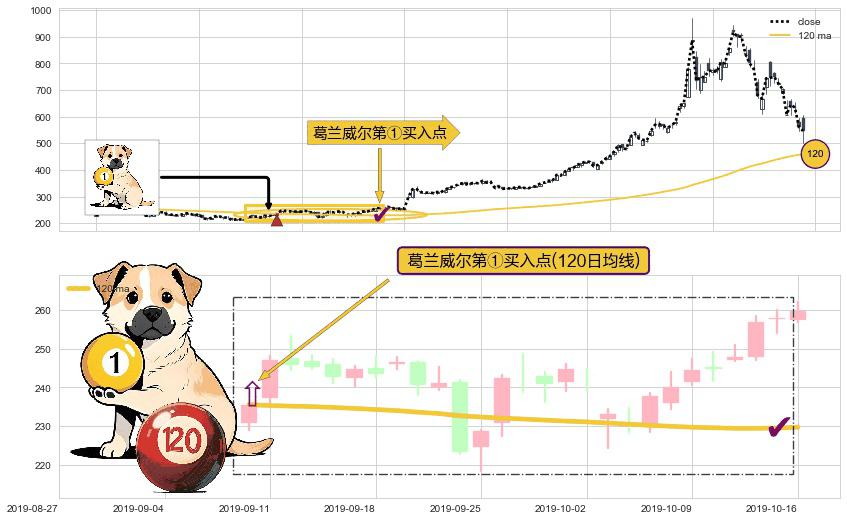 ⚀ 2019-09-10-日显现 葛兰威尔均线 120日均线 第买①入点 走势反转见底信号,后市看涨,买进信号
