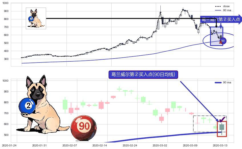 ⚀ 2020-03-13-日显现 葛兰威尔均线 90日均线 第②买入点 上升趋势的中继信号,后市看涨,买进信号