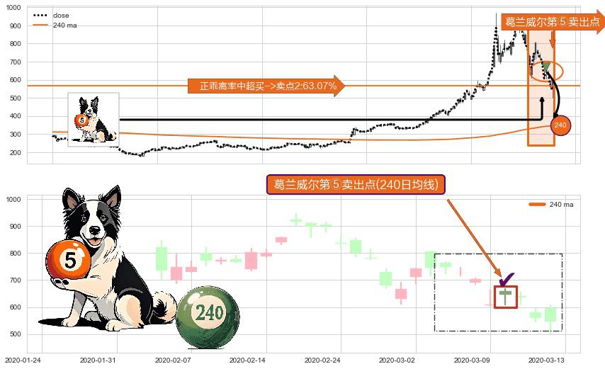 ⚀ 2020-03-10-日显现 葛兰威尔均线 240日均线 第⑤卖出点 上升趋势均值回复的短线回落信号,后市看跌,卖出信号