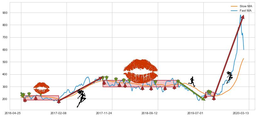 2017-09-27至2019-01-22 慢线与快线多次接触,存在上下穿越,有缠绕