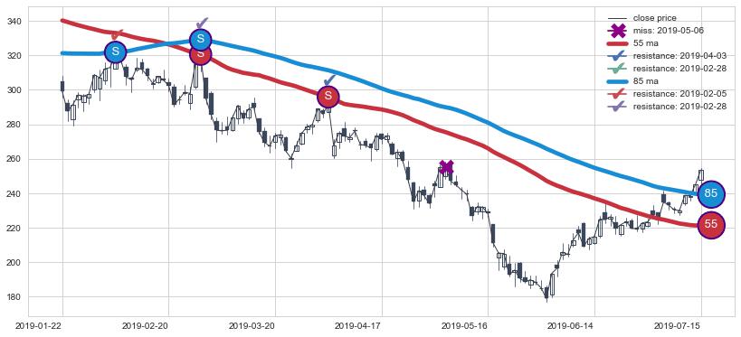 ➢ 最优均线组合共正确确认支撑阻力信号5处,正确确认率 62.50%