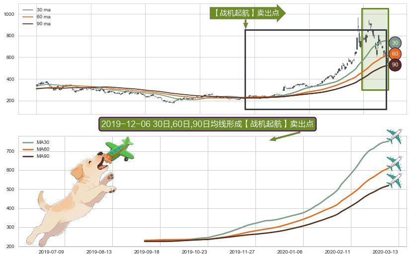 ⚀ 2019-09-06日-2020-03-11日显现 30日-60日-90日均线 【战机起航】卖出点 看空信号,后市看跌,卖出