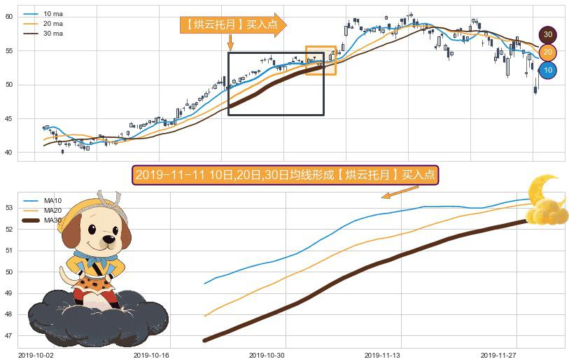 形态多维评估: ⚀ 2019-10-21日-2019-12-02日显现 10日-20日-30日均线 【烘云托月】买入点 看多信号,后市看涨,买入