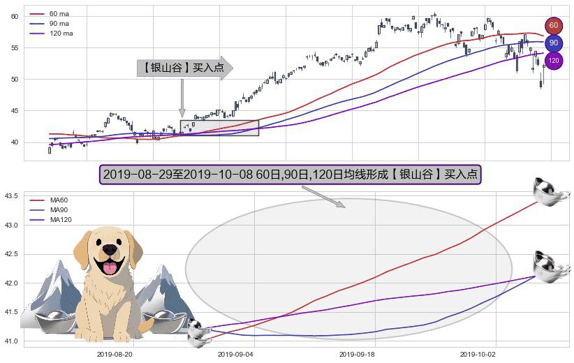 形态多维评估: ⚀ 2019-08-30-日至2019-10-08-日显现 60日-90日-120日均线 【银山谷】买入点 看多信号,后市看涨,买入