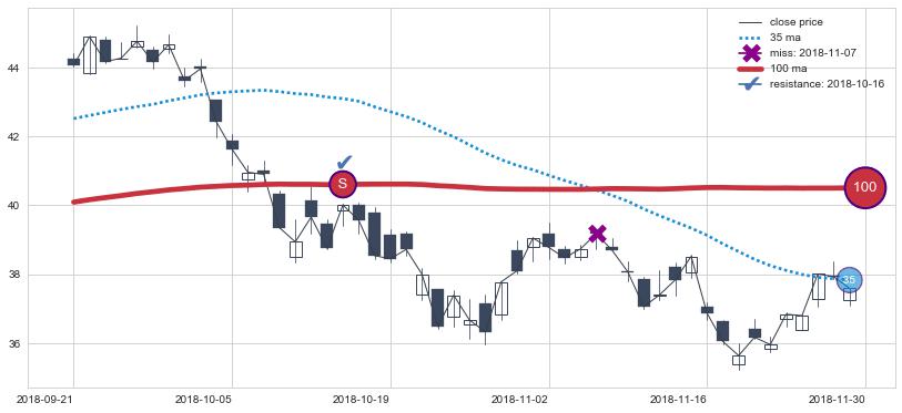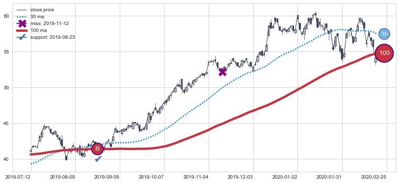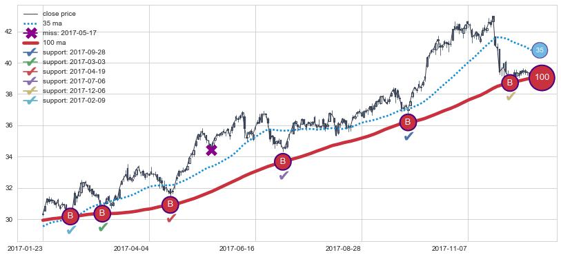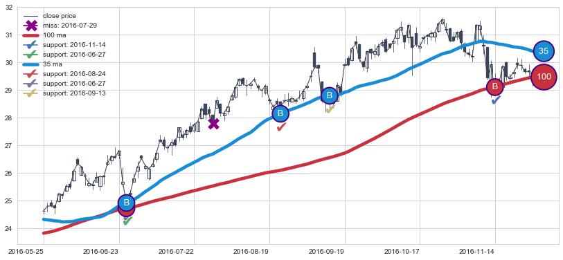 上涨趋势2016-05-25-2016-11-29,均线35, 100确认关键支撑4处
