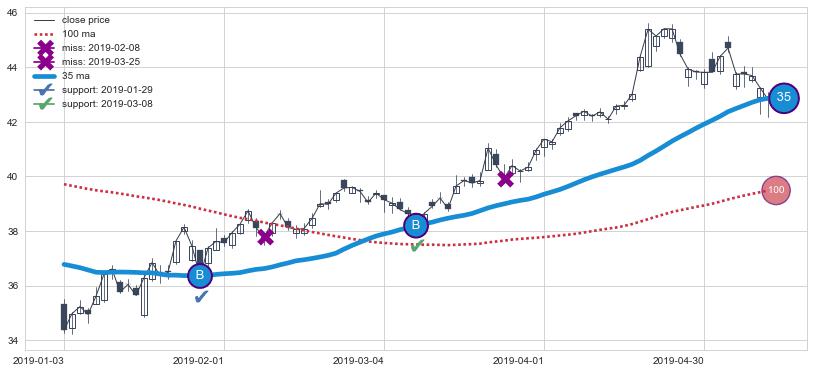 上涨趋势2019-01-03-2019-05-10,均线35确认关键支撑2处