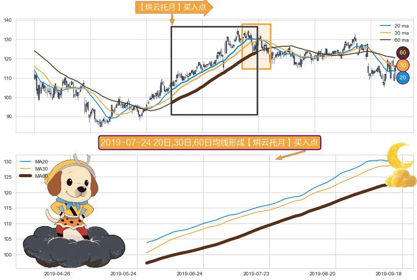 ⚀ 2019-05-30日-2019-09-16日显现 20日-30日-60日均线 【烘云托月】买入点 看多信号,后市看涨,买入