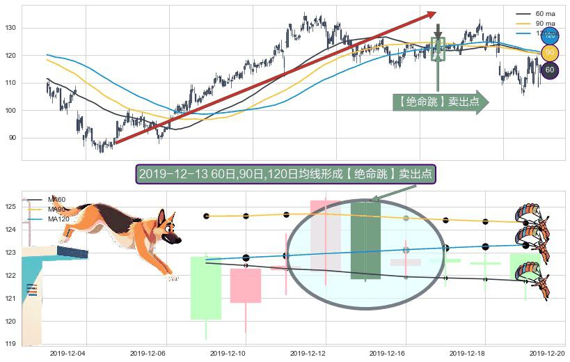 ⚀ 2019-12-13日显现 60日-90日-120日均线 【绝命跳】卖出点 看空信号,后市看跌,卖出