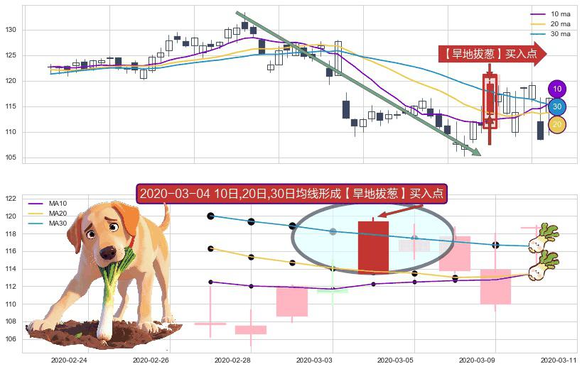 ⚀ 2020-03-04日显现 10日-20日-30日均线 【旱地拔葱】买入点 看多信号,后市看涨,买入