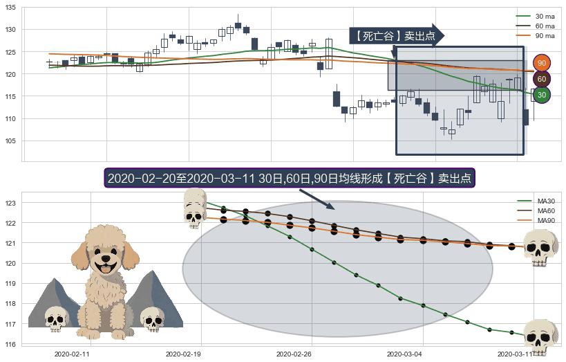 ⚀ 2020-02-21-日至2020-03-11-日显现 30日-60日-90日均线 【死亡谷】卖出点 看空信号,后市看跌,卖出