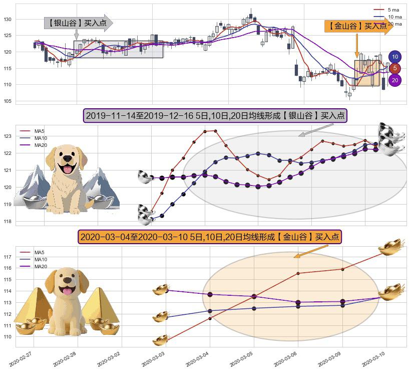 ⚀ 2020-03-05-日至2020-03-10-日显现 5日-10日-20日均线 【金山谷】买入点 其再次确认了买入信号,可靠性更强,买入