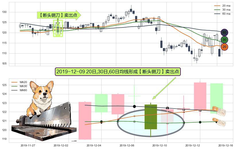 ⚀ 2019-12-09日显现 20日-30日-60日均线 【断头铡刀】卖出点 看空信号,后市看跌,卖出