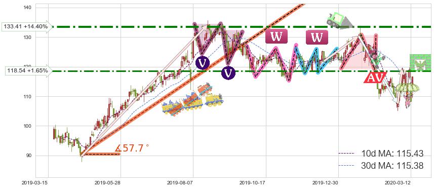 ➢ 2020-03-04到达第❶价格目标位置119.42