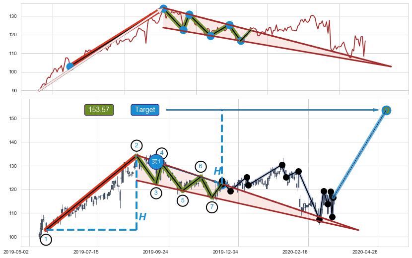 ➣ AI预测: 假定反转启动后, 第❸目标位置(2020-11-18, 134.21)