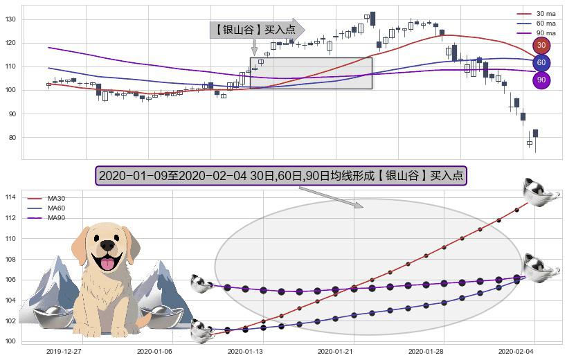⚀ 2020-01-10-日至2020-02-04-日显现 30日-60日-90日均线 【银山谷】买入点 看多信号,后市看涨,买入