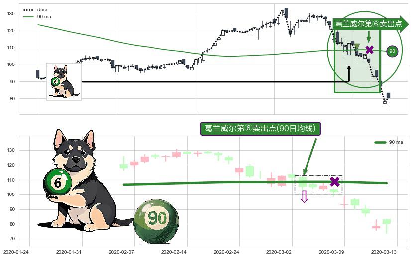⚀ 2020-03-03-日显现 葛兰威尔均线 90日均线 第⑥卖出点 走势反转见顶信号,后市看跌,卖出信号
