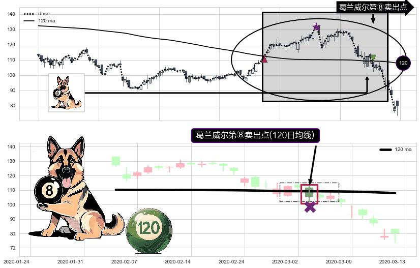 ⚀ 2020-03-03-日显现 葛兰威尔均线 120日均线 第⑧卖出点 下降趋势的中继信号,后市看跌,卖出信号