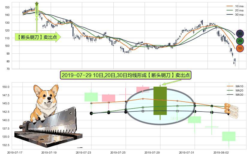 ⚀ 2019-07-29日显现 10日-20日-30日均线 【断头铡刀】卖出点 看空信号,后市看跌,卖出