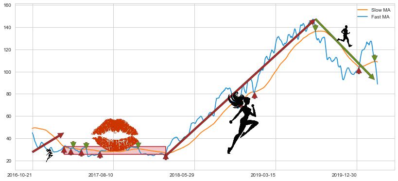 2017-02-14至2018-02-14 慢线与快线多次接触,存在上下穿越,有缠绕