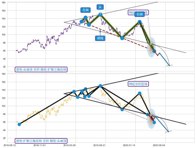 | 13 🅚:塔形顶 | 圆顶 ➕ 📐:头肩顶猜想突破点临近,临近关键支撑位,预期下沉突破下跌 ☞ 看空信号 ⇥ 【🅚线】交织【图形】⇥ 综合量化分数: 49 | > |