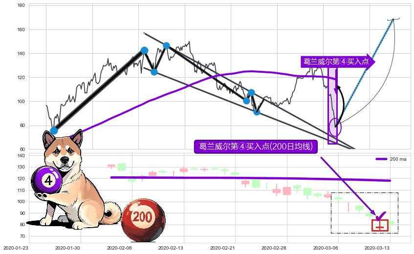 ➢ 高点影线(2020-03-13: 83.18 )→回踩→第二根k线高点(2020-03-12: 82.82 )