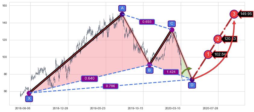 ➣ 未完成【伽利】形态起点X: 2018-07-31, 已到达C点: 2020-02-04, 预测最终D点: 2020-04-21, 共434交易日
