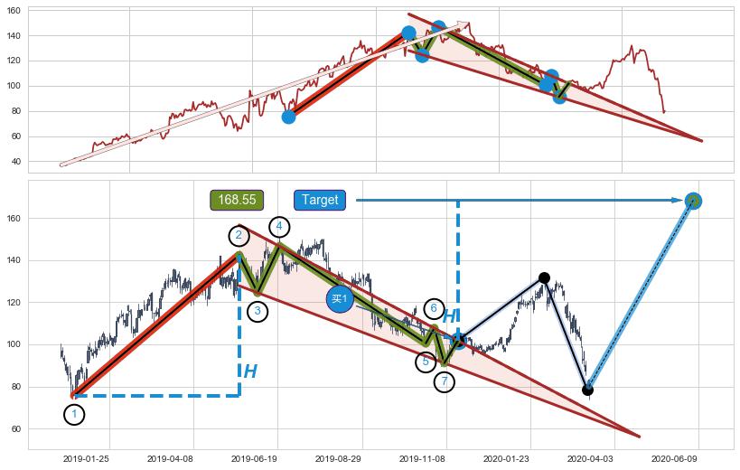➢ AI预测: 假定反转启动后, 第❷目标位置(2020-07-27, 120.83)