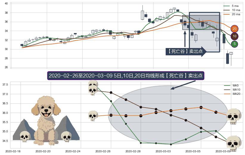 形态多维评估: ⚀ 2020-02-27-日至2020-03-09-日显现 5日-10日-20日均线 【死亡谷】卖出点 看空信号,后市看跌,卖出