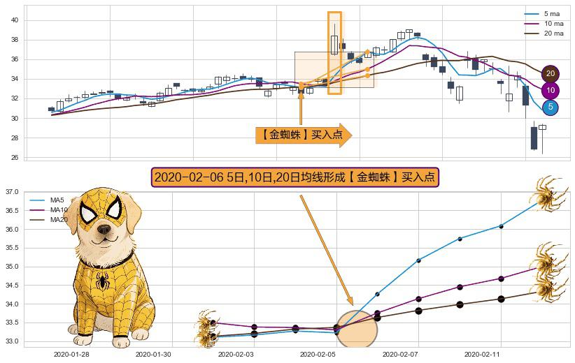 形态多维评估: ⚀ 2020-02-06日显现 5日-10日-20日均线 【金蜘蛛】买入点 看多信号,后市看涨,买入