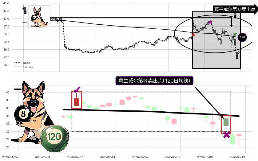 形态多维评估: ⚀ 2020-03-11-日显现 葛兰威尔均线 120日均线 第⑧卖出点 下降趋势的中继信号,后市看跌,卖出信号