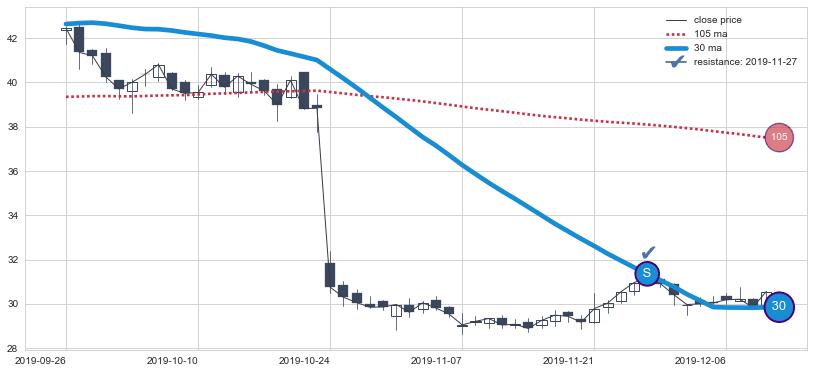 下跌趋势2019-09-26-2019-12-11,均线30确认关键阻力1处
