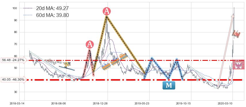 ♘ 支撑价格位40.05,可信任强度88.40%,距离最后交易2020-03-13形成的收盘价格74.58相差 -46.30%
