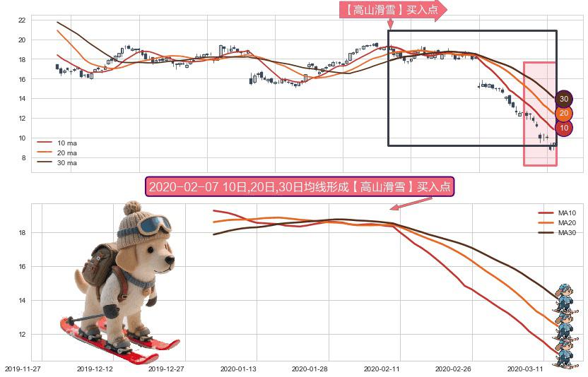 ⚀ 2020-01-03日-2020-03-13日显现 10日-20日-30日均线 【高山滑雪】买入点 看多信号,后市看涨,买入