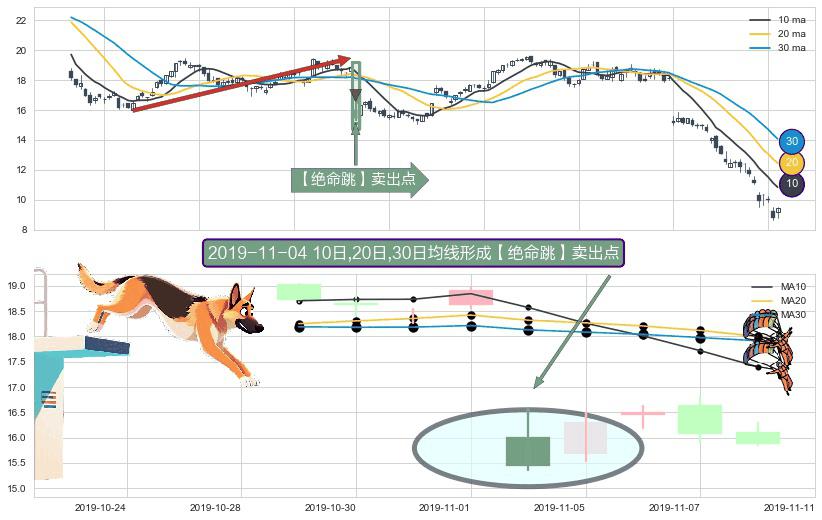 ⚀ 2019-11-04日显现 10日-20日-30日均线 【绝命跳】卖出点 看空信号,后市看跌,卖出