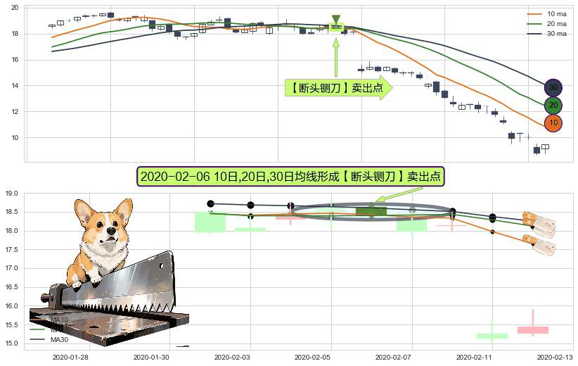 ⚀ 2020-02-06日显现 10日-20日-30日均线 【断头铡刀】卖出点 看空信号,后市看跌,卖出