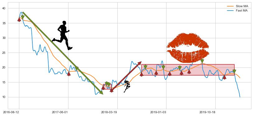 2016-09-02至2017-12-22 慢线与快线呈空头排列, 慢线与快线接触少,无缠绕