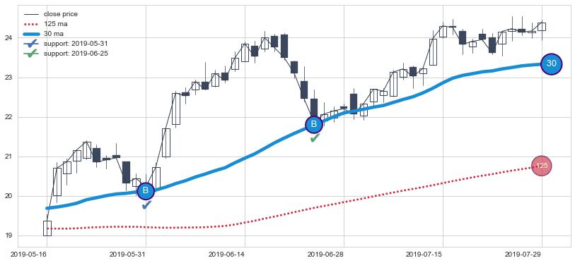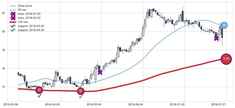 ➢ 最优均线组合共正确确认支撑阻力信号7处,正确确认率 70.00%