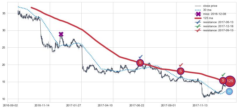 ⚂ 2019-12-23-日均线向上突破,2019-12-27-日重新下穿均线破位,均线阻力再次生效