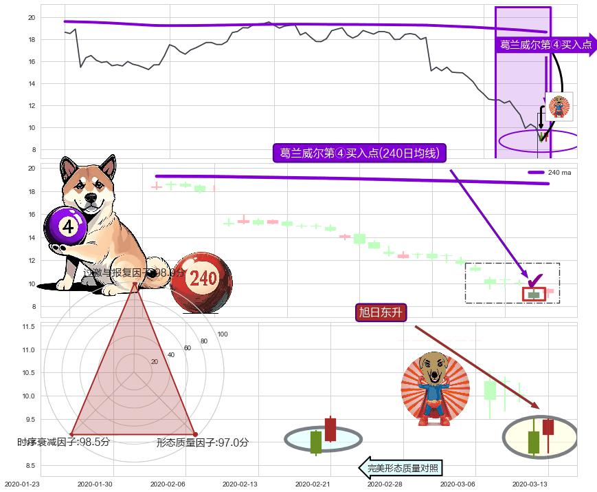 | 4 🅚:锤头线(锤子线) ➕ 🎢:葛兰威尔第④买入点买入点信号形成后,猜想后续走势持续反弹上升(均值回复) ☞ 看多信号 ⇥ 【均线】交织【🅚线】⇥ 综合量化分数: 51 | > |