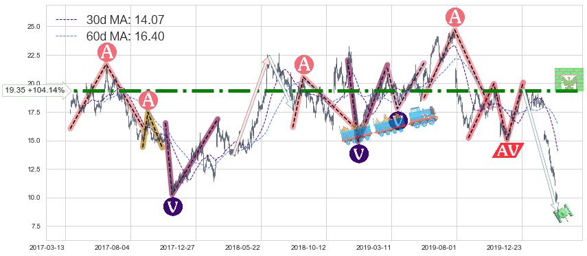♘ 阻力价格位19.35,可信任强度99.00%,距离最后交易2020-03-13形成的收盘价格9.48相差 +104.14%