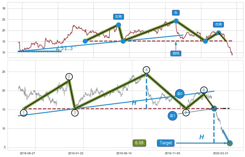 ➣ 【多空实力根本性转变→大方向抉择→空方占优】已在2020-02-21突破【支撑】颈线 14.78