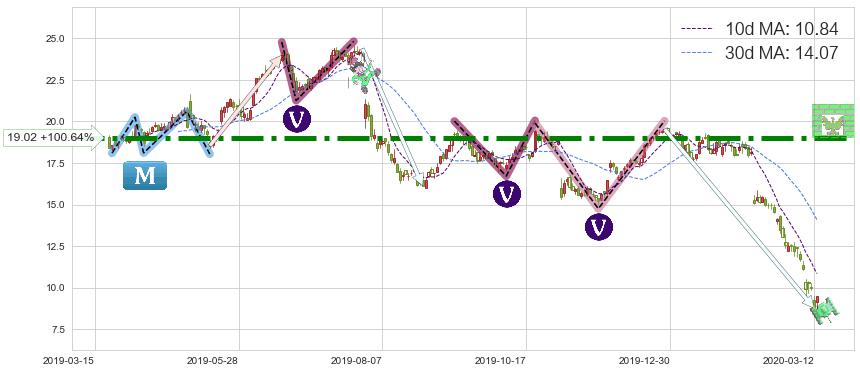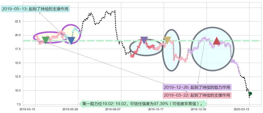 ♘ 阻力价格位19.02,可信任强度97.39%,距离最后交易2020-03-13形成的收盘价格9.48相差 +100.64%