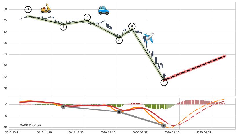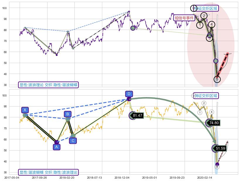 | 2 🅚:【高山滑雪】买入点 ➕ 🌊:波浪理论猜想下跌浪5已形成,猜想后续形成abc反弹上涨(均值回复) ☞ 看多信号 ⇥ 【均线】交织【图形】⇥ 综合量化分数: 60 | > |