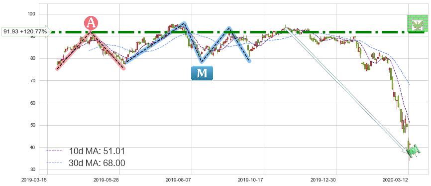 ♘ 阻力价格位91.93,可信任强度91.16%,距离最后交易2020-03-13形成的收盘价格41.64相差 +120.77%