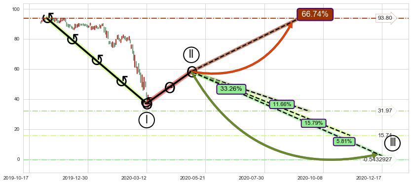 ➢ 高概率大级别循环下跌浪被破坏,反转向上(突破5浪起点)概率66.74%